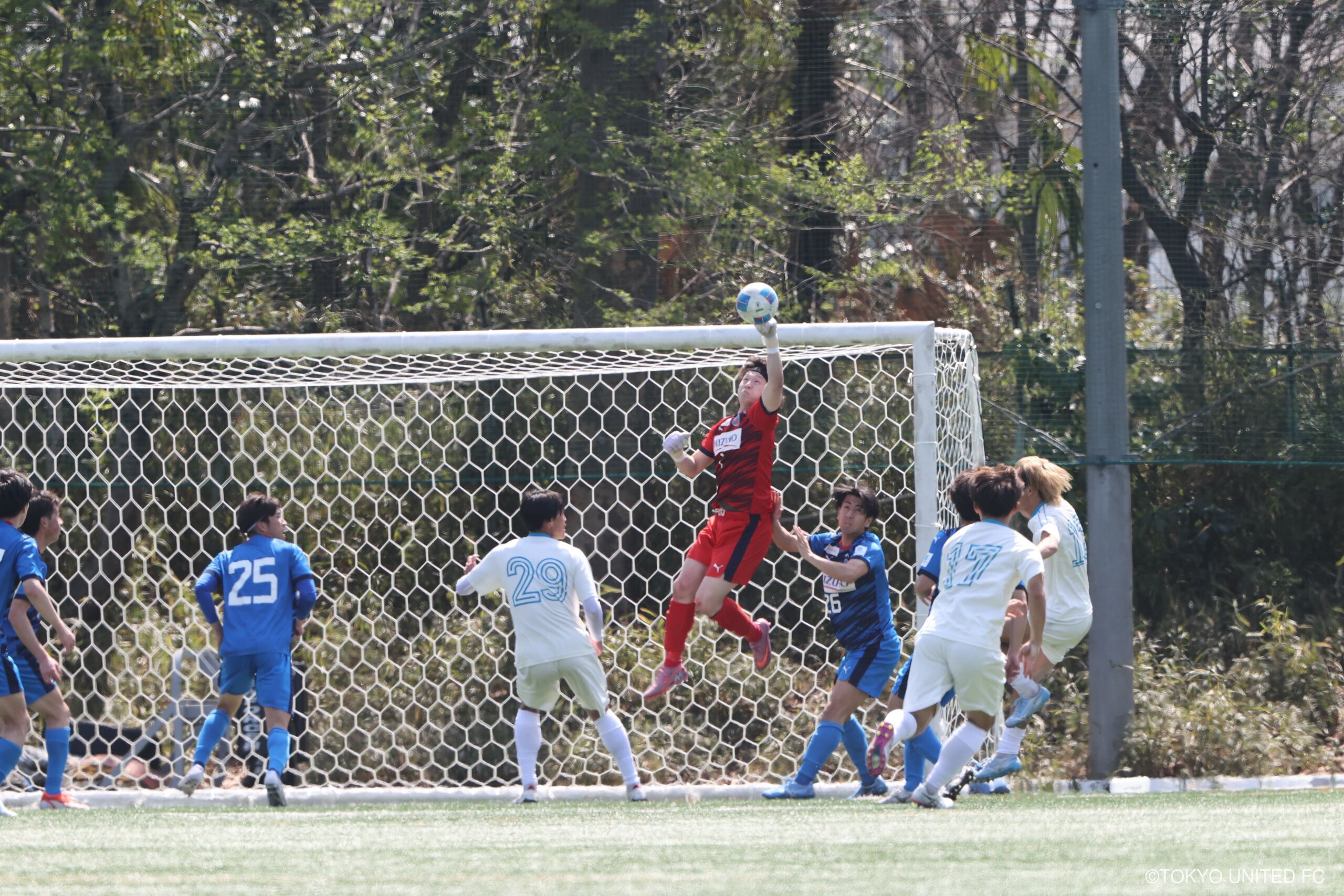 後半12分 相手の猛攻もGK高橋ビッグセーブ。